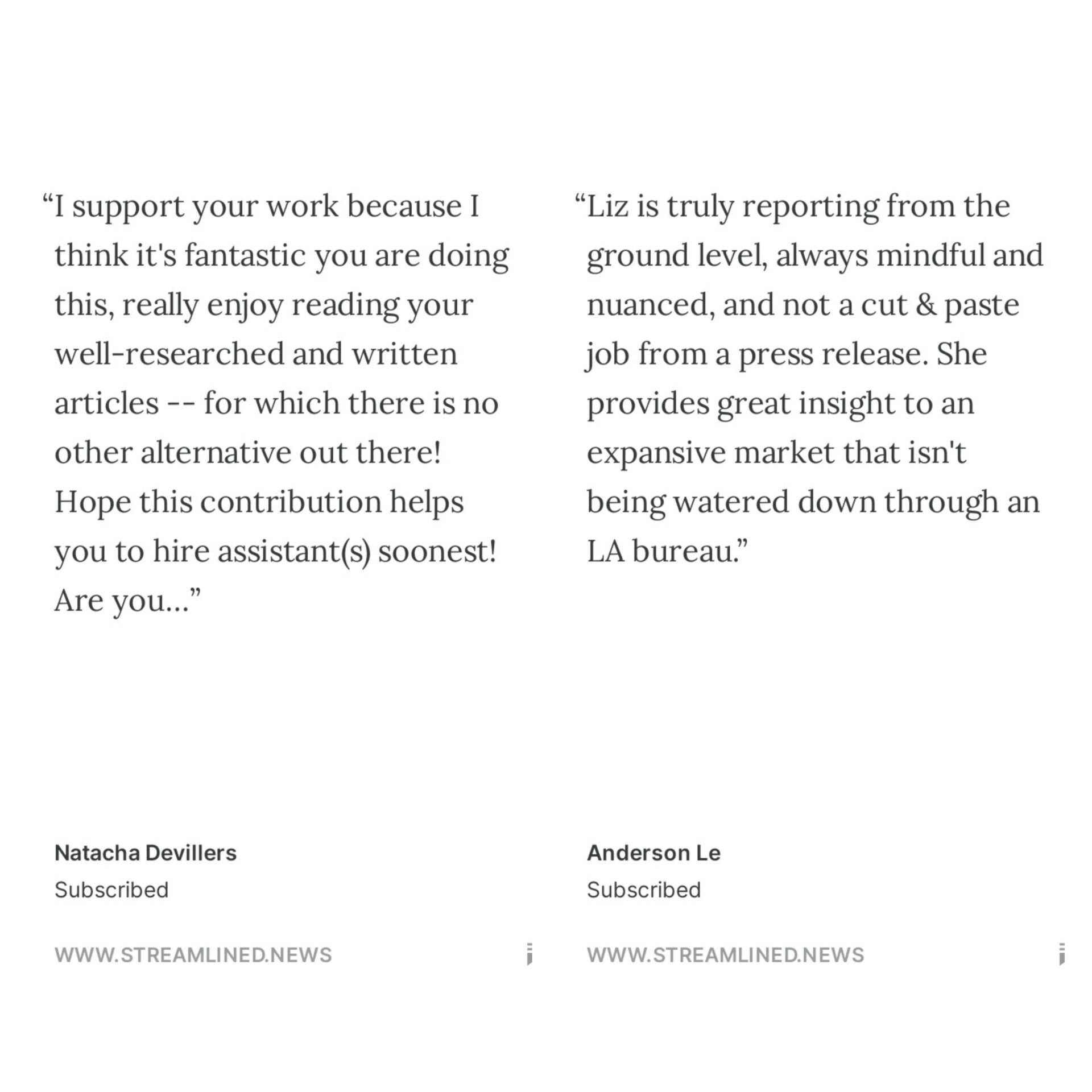 I launched Streamlined in 2022 because I saw many gaps in the US and UK-based trades’ coverage of the content industries outside of North America and Europe. I also wanted to build a reader-funded business model for film and TV industry journalism that isn’t dependent on highly-compromised contract publishing assignments or chasing internet traffic.